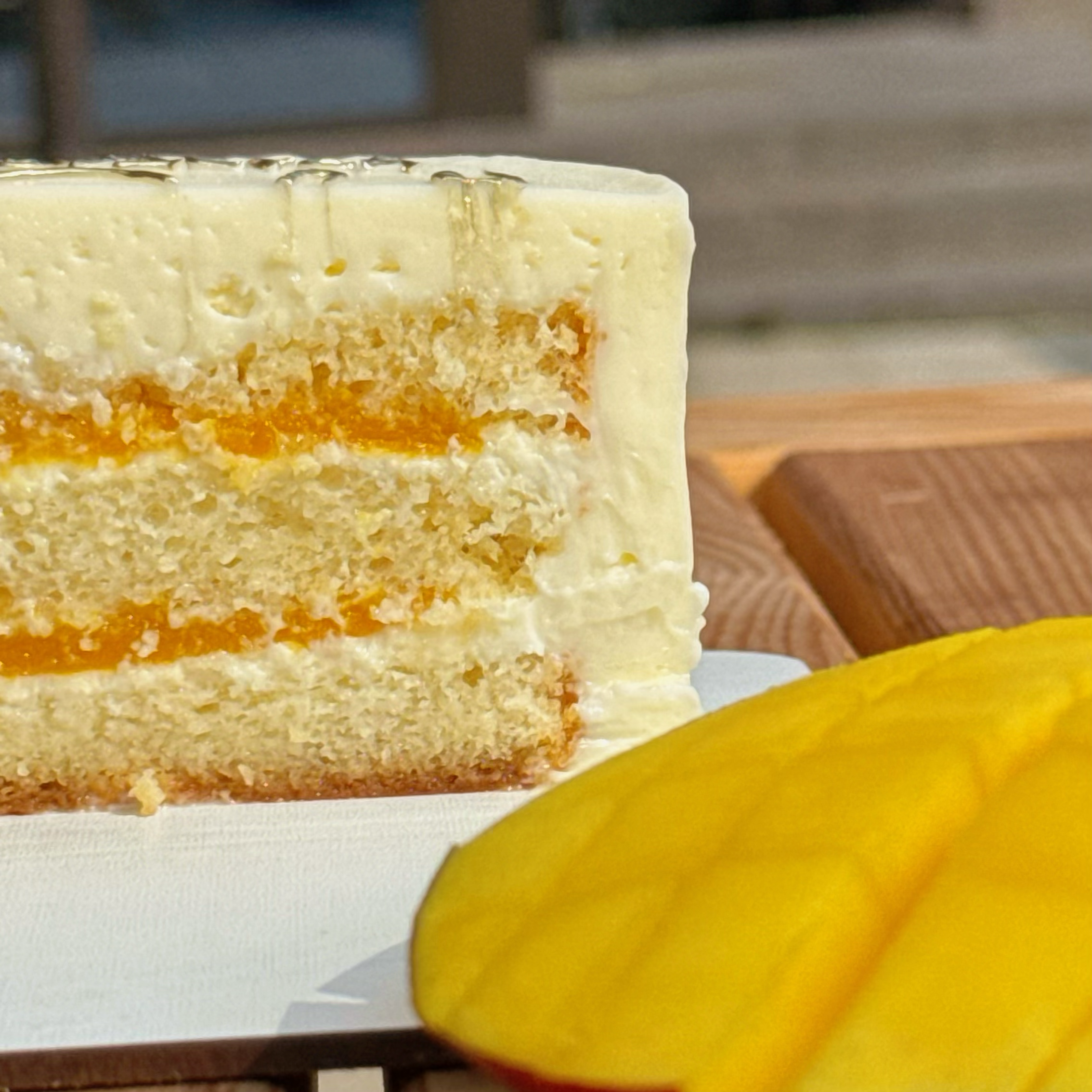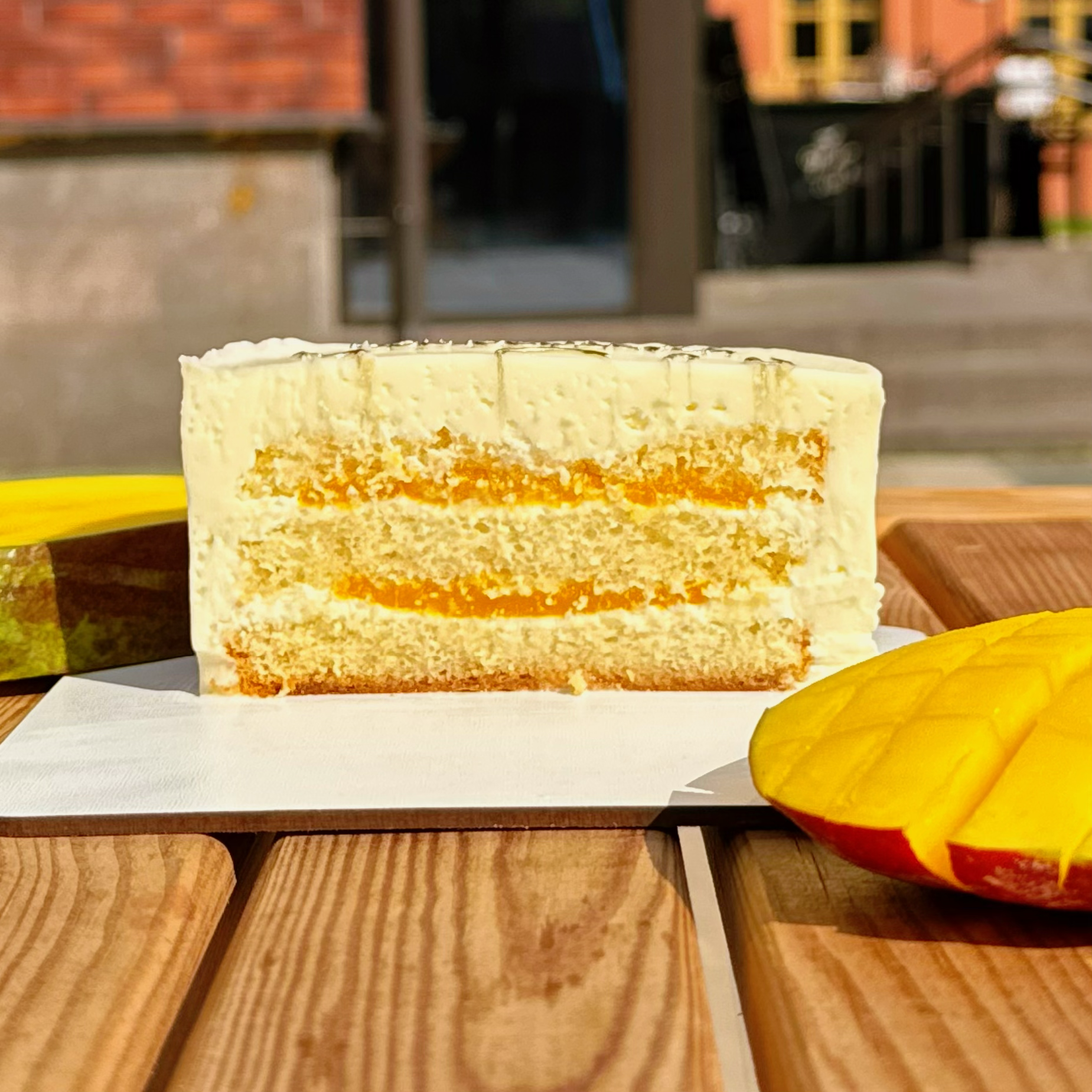 - Состав: Натуральный ванильный бисквит на сливочном масле, сливочно - сырный крем, кули манго/маракуйя.